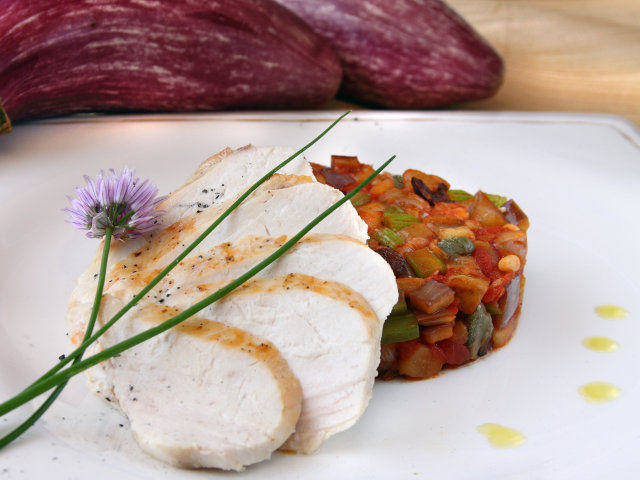 Morbidissima carne di pollo accompagnata da una sfiziosa caponata di verdure. Un piatto dal gusto sofisticato ma davvero semplice da preparare.