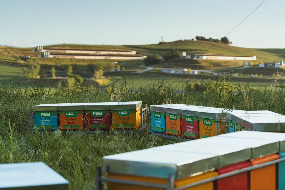 Le api ci insegnano che l’unione fa la forza: per questo, abbiamo lavorato fianco a fianco con l’apicoltore marchigiano Giorgio Poeta, collocando nei campi Fileni Bio 3 apiari, ciascuno composto da 24 alveari, per un totale di 72.