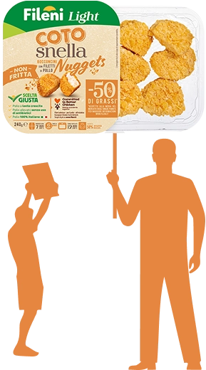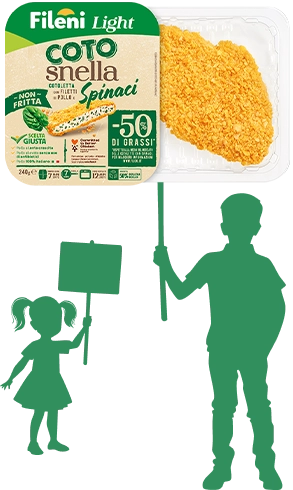 Dopo il successo di Cotosnella – la cotoletta di pollo non fritta, col 50% di grassi in meno rispetto alla media di mercato delle cotolette classiche – le persone volevano di più! È iniziata così la Rivoluzione Fileni Light, che ha già portato ad altre due deliziose conquiste: Cotosnella Spinaci e Cotosnella Nuggets.