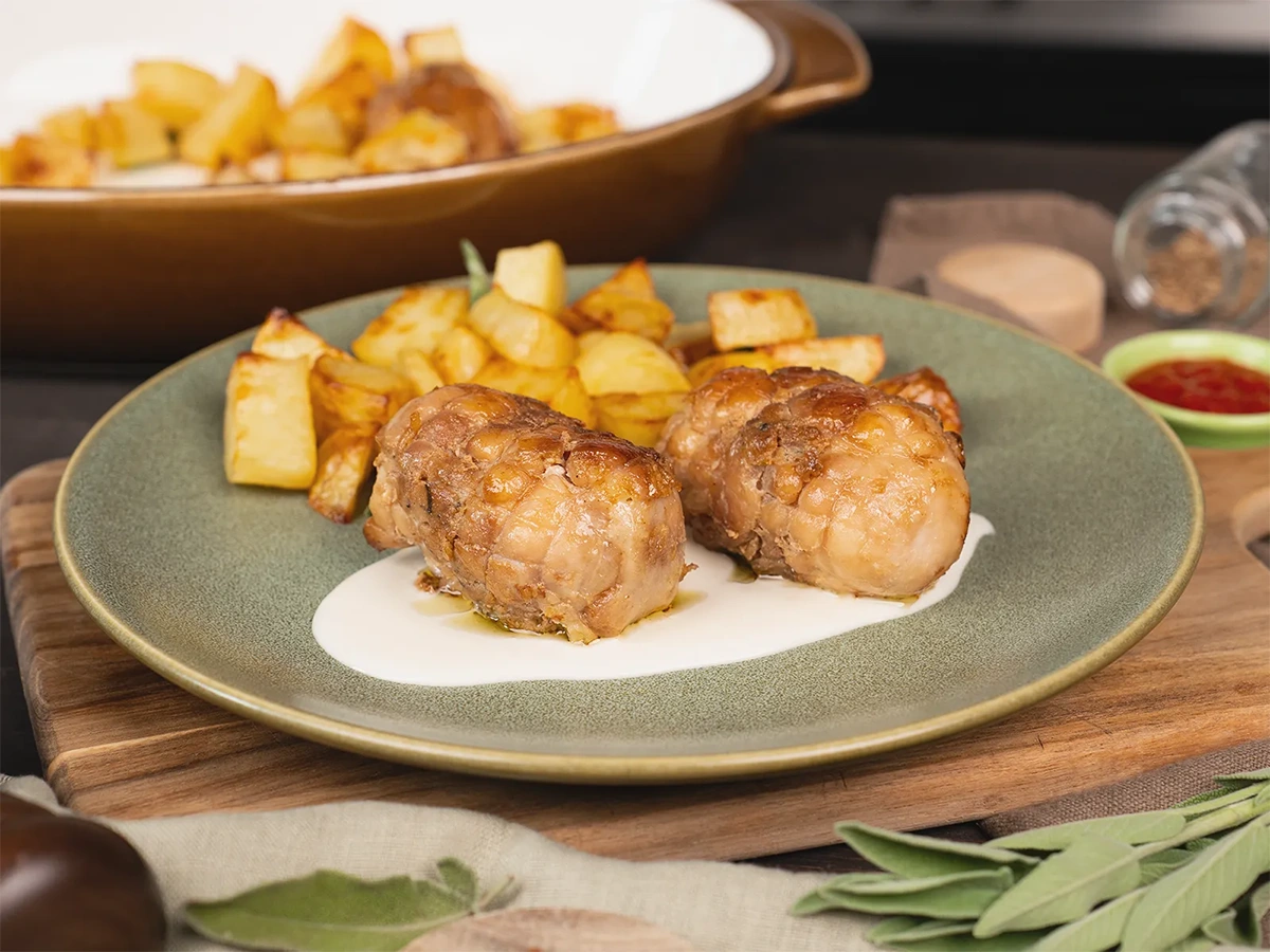 Handmade with exquisite boneless chicken drumsticks, these mini roulades are ideal for a fancy and light dinner, in the name of the food and wine Italian tradition.