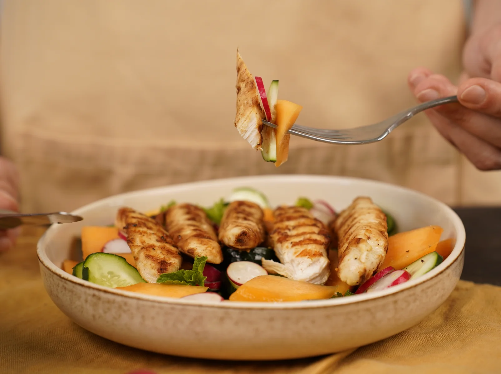 L’estate è alle porte! Precisamente a quella del frigo, che continui ad aprire e chiudere in cerca di idee di piatti freschi e leggeri che non ti facciano sudare ad ogni boccone. Abbiamo indovinato? Bene, se hai del pollo Fileni, cetrioli, ravanelli e un po’ di melone, puoi farci questa squisita insalata estiva di pollo: perfetta per un pranzo all’aperto (possibilmente all’ombra), o una cena leggera e rinfrescante!