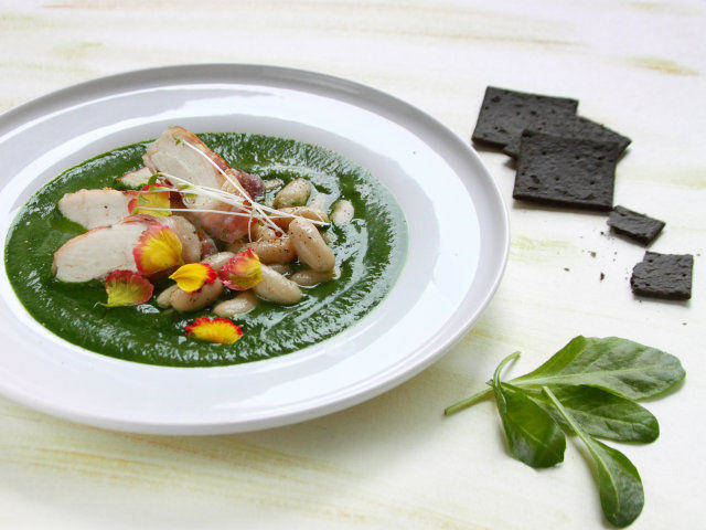 Pollo con crema di erbette e cannellini