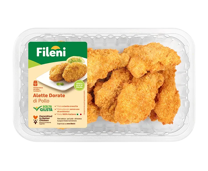 Le ali di pollo vengono selezionate una ad una, panate con cura e cotte. Fatte solo con ingredienti naturali e controllati, in pochi minuti possono diventare uno sfizioso secondo, in grado di soddisfare ogni palato.