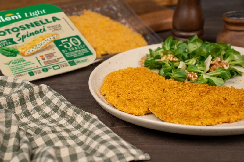 La media dei grassi è calcolata sulla somma dei prodotti che rappresentano il 70% delle vendite a valore del mercato delle cotolette con spinaci (Fonte: Nielsen, AT Ottobre 2024; Perimetro: Iper + Super + Libero Servizio). Il valore di riferimento della media del mercato è stato ottenuto considerando tutti i prodotti appartenenti al mercato delle cotolette con spinaci, che costituiscono il 70% dello stesso e comprendono i seguenti marchi: