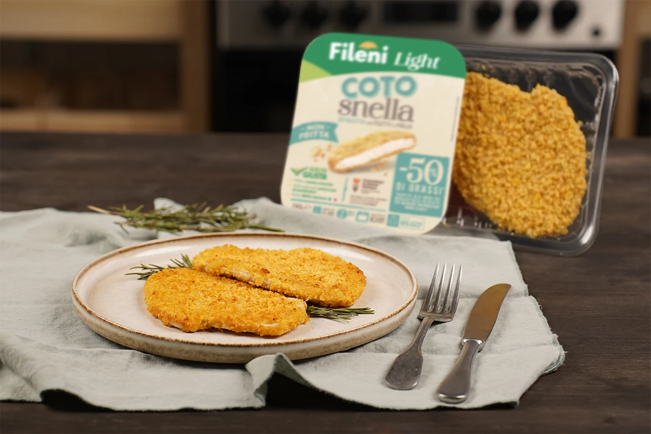Cotosnella è la nostra cotoletta più leggera, fatta con tenerissimi filetti di pollo cotti al forno, in una croccante panatura. Con pollo 100% italiano allevato senza l’uso di antibiotici.
