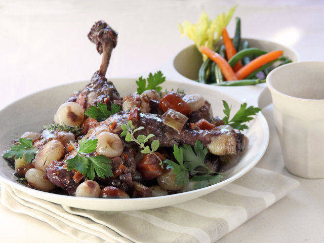 Cosce di pollo al vino rosso (Coq au vin)
