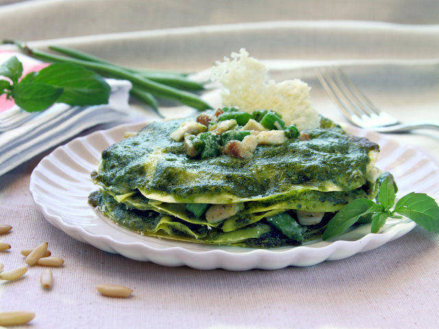 Una gustosa rivisitazione di uno dei più grandi classici della gastronomia italiana: gustosissime lasagne impreziosite da uno squisito pesto alla genovese e da bocconcini di pollo. Regalatevi un momento di assoluyto piacere culinario!