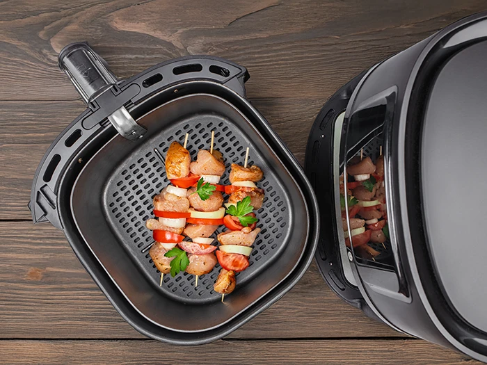 La friggitrice ad aria può essere una valida alternativa per cuocere gli spiedini di pollo in modo uniforme e senza complicazioni. Il calore circola in maniera costante e favorisce una buona doratura esterna, lasciando la carne morbida all’interno.